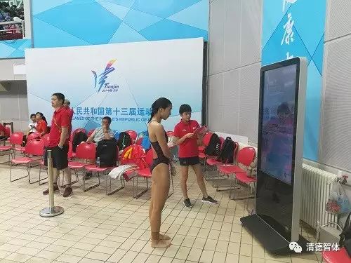 预选赛中,清德智体为比赛提供的全程视频服务成为赛事中的一大亮点,这次赛事也形成了一个新传统——运动员一出水,都会第一时间走到屏幕前看动作,教练员也已形成习惯,站在大屏前,充分利用这套系统对运动员刚刚的表现回放分析从而指导动作。